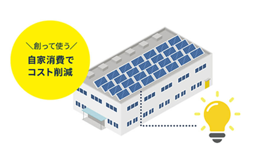 「自家消費型太陽光発電」は、自社の屋根や空いたスペースにパネルを設置し、発電した電気をそのまま事業に活かせるしくみです。